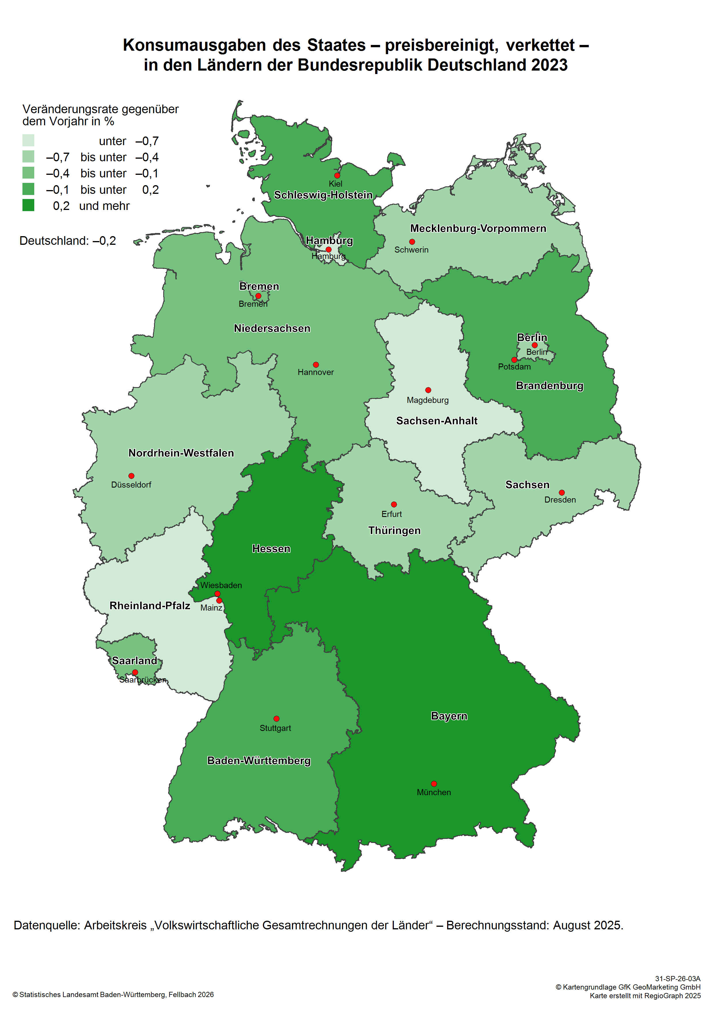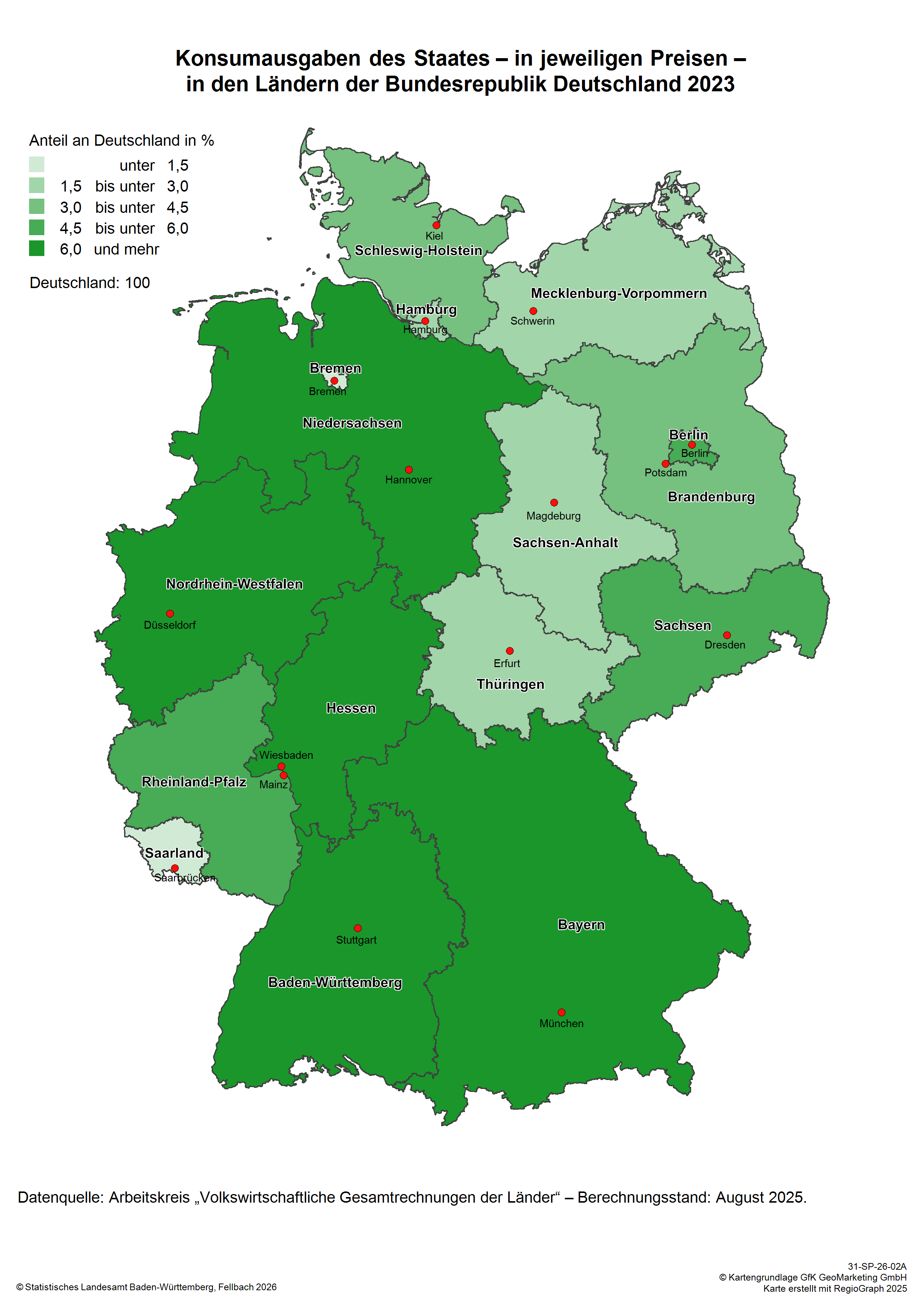 Konsum, Sparen Eckzahlen Alle Ergebnisse Grafiken Karten Methoden Private Konsumausgaben Tabelle Private Konsumausgaben bis 2023 – in jeweiligen Preisen – nach Bundesländern Tabelle Private Konsumausgaben bis 2023 – preisbereinigt, verkettet – nach Bundesländern Sparen der privaten Haushalte Tabelle Sparen der privaten Haushalte*) bis 2023 nach Bundesländern Tabelle Sparquote der privaten Haushalte*) bis 2023 nach Bundesländern Konsumausgaben des Staates Tabelle Konsumausgaben des Staates bis 2023 – in jeweiligen Preisen – nach Bundesländern Tabelle Konsumausgaben des Staates bis 2023 – preisbereingt, verkettet – nach Bundesländern Veröffentlichungskalender Private Konsumausgaben Excel 2.26 MB Entstehung, Verteilung und Verwendung des Bruttoinlandsprodukts in den Ländern der Bundesrepublik Deutschland 1991 bis 2024 (Reihe 1 Band 5) Berechnungsstand: Februar 2025 Sparen der privaten Haushalte Excel 2.26 MB Entstehung, Verteilung und Verwendung des Bruttoinlandsprodukts in den Ländern der Bundesrepublik Deutschland 1991 bis 2024 (Reihe 1 Band 5) Berechnungsstand: Februar 2025 Konsumausgaben des Staates Excel 70.89 KB Konsumausgaben des Staates in den Ländern der Bundesrepublik Deutschland 1991 bis 2023 (Arbeitstabellen) Berechnungsstand: August 2025 Inhaltsverzeichnis Reihe 1 Band 5 Private Konsumausgaben pdf 98.33 KB Private Konsumausgaben 2023 - in jeweiligen Preisen - nach Bundesländern Berechnungsstand: Februar 2025 pdf 99.48 KB Private Konsumausgaben 2023 - preisbereinigt, verkettet - nach Bundesländern Berechnungsstand: Februar 2025 Sparen der privaten Haushalte pdf 96.13 KB Sparen der privaten Haushalte 2023 nach Bundesländern Berechnungsstand: Februar 2025 pdf 100.43 KB Sparquote der privaten Haushalte 2023 nach Bundesländern Berechnungsstand: Februar 2025 Konsumausgaben des Staates pdf 111.77 KB Konsumausgaben des Staates 2023 – in jeweiligen Preisen – nach Bundesländern Berechnungsstand: August 2025 pdf 109.88 KB Konsumausgaben des Staates 2023 – preisbereinigt, verkettet – nach Bundesländern Berechnungsstand: August 2025 Private Konsumausgaben png 74.7 KB Private Konsumausgaben 2023 – in jeweiligen Preisen – nach Bundesländern Berechnungsstand: Februar 2025 png 74.66 KB Private Konsumausgaben 2023 – preisbereinigt, verkettet – nach Bundesländern Berechnungsstand: Februar 2025 Konsumausgaben des Staates png 309.88 KB Konsumausgaben des Staates 2023 – in jeweiligen Preisen – nach Bundesländern Berechnungsstand: August 2025 png 314.67 KB Konsumausgaben des Staates 2023 – preisbereinigt, verkettet – nach Bundesländern Berechnungsstand: August 2025 Auszüge aus der Methodenbeschreibung (Revision 2019) pdf 1.14 MB Konsumausgaben der privaten Haushalte pdf 1.14 MB Sparen der privaten Haushalte pdf 1.27 MB Konsumausgaben des Staates Methodenbeschreibungen